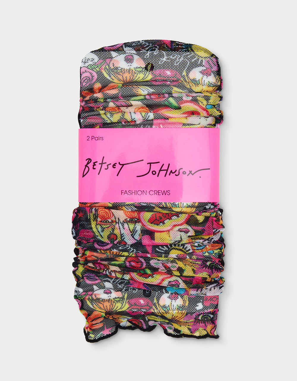 Step into Betsey’s world with this 2-pack mesh crew socks featuring one pair with hand-drawn faces by Betsey Johnson herself and one solid black pair. Part of our exciting art campaign. these versatile socks let you express your style—dress them up with heels or keep it casual with sneakers. Breathable mesh construction keeps your feet comfortable all day long. whether you’re making a bold statement or playing it cool.