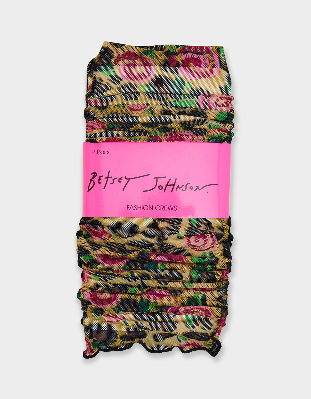 Step into Betsey’s world with this 2-pack mesh crew socks featuring one pair with a leopard print and rose graphic and one solid black pair. Part of our exciting art campaign. these versatile socks let you express your style—dress them up with heels or keep it casual with sneakers. Breathable mesh construction keeps your feet comfortable all day long. whether you’re making a bold statement or playing it cool.
