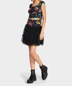 With dramatic prints and puffed shoulders. this cropped top is irresistibly flattering. Complement this silhouette with our matching print skirts or tutu styles!