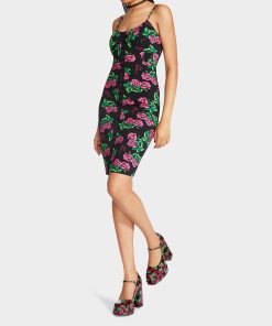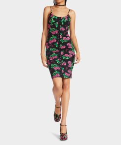 Be flirty and festive with this all-over rose print bodycon dress It will be the perfect look for a night out!