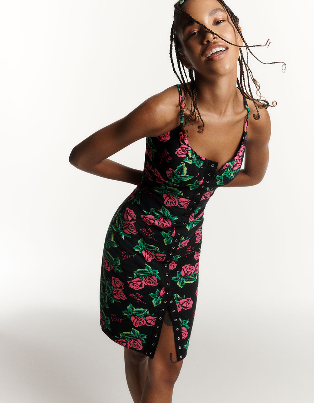 80TH BASH SNAP FRONT SLIP DRESS ROSES | RE:LUV
