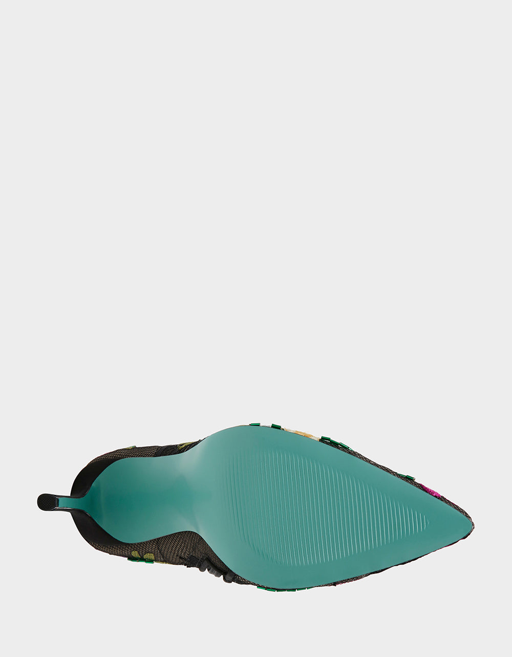 Add a touch of whimsy to your shoe collection with the ANITA pointed-toe stiletto heel ankle boot. This not only adds height and sleekness to your look. but its unique multi-floral design will also add a playful twist to any outfit.