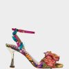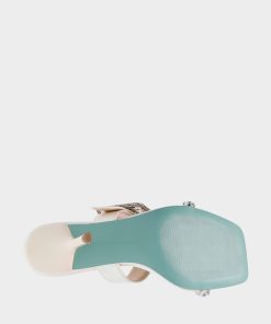 Step out in style with the shimmering iridescent textile . Prepare to feel like a stylish queen with the statement-making oversized rhinestone buckle on this heel.