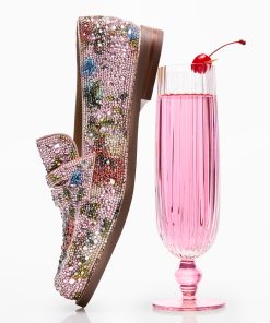 Be dazzled in the ARON all-over rhinestone embellished . These luxurious shoes feature a classic penny loafer silhouette. adorned with shimmering rhinestones for a touch of glamour.