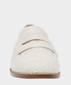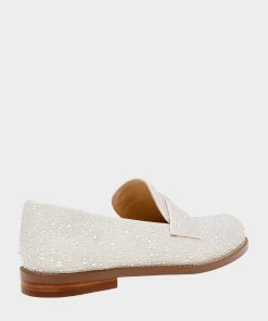 Be dazzled in the ARON all-over pearl embellished . These luxurious shoes feature a classic penny loafer silhouette. adorned with shimmering rhinestones for a touch of glamour.