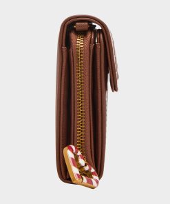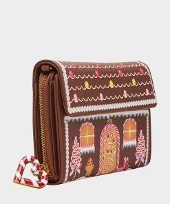Celebrate the season with the BAKING SPIRITS BRIGHT WALLET ON CHAIN BROWN. Its fun gingerbread print. sprinkled with snow. candy cane trees. and gumdrops. instantly lifts your holiday spirit. The gold removable chain lets you switch from to with ease. while the candy cane heart charm on the zipper adds a sweet and playful finishing touch. Perfect for festive outings and merry moments!