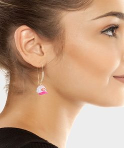 Take me out to the ball game with these playful dangle featuring elegant long ear wire adorned with delicate stones paired with charming baseball cap. Earrings have a shepherds hook closure. Made from metal. glass crystal and plastic.