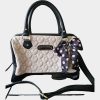 - PVC striped printed exterior. Betsey belted signature stud bow