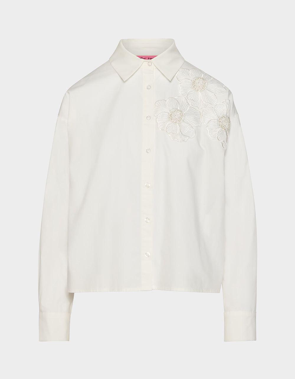 Meet your new wardrobe essential—the Betsey Bloom Shirt in Off White. This classic collar button-down shirt gets a playful twist with delicate floral and sequin detailing that catches the light beautifully. Perfect for dressing up your everyday look or adding a touch of sparkle to any occasion. it’s the versatile piece you’ll reach for again and again.