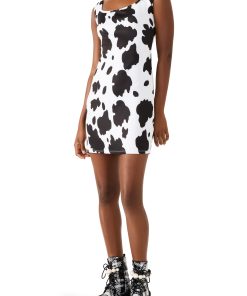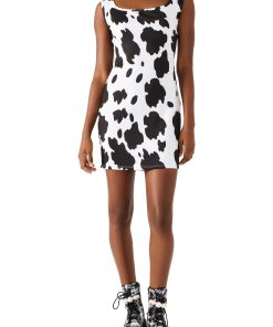 Moo-ve over fashion norms with our BETSEY COW PRINT ! This mini dress features a playful cow print and a trendy square neckline. It’s a quirky and fun addition to any wardrobe.