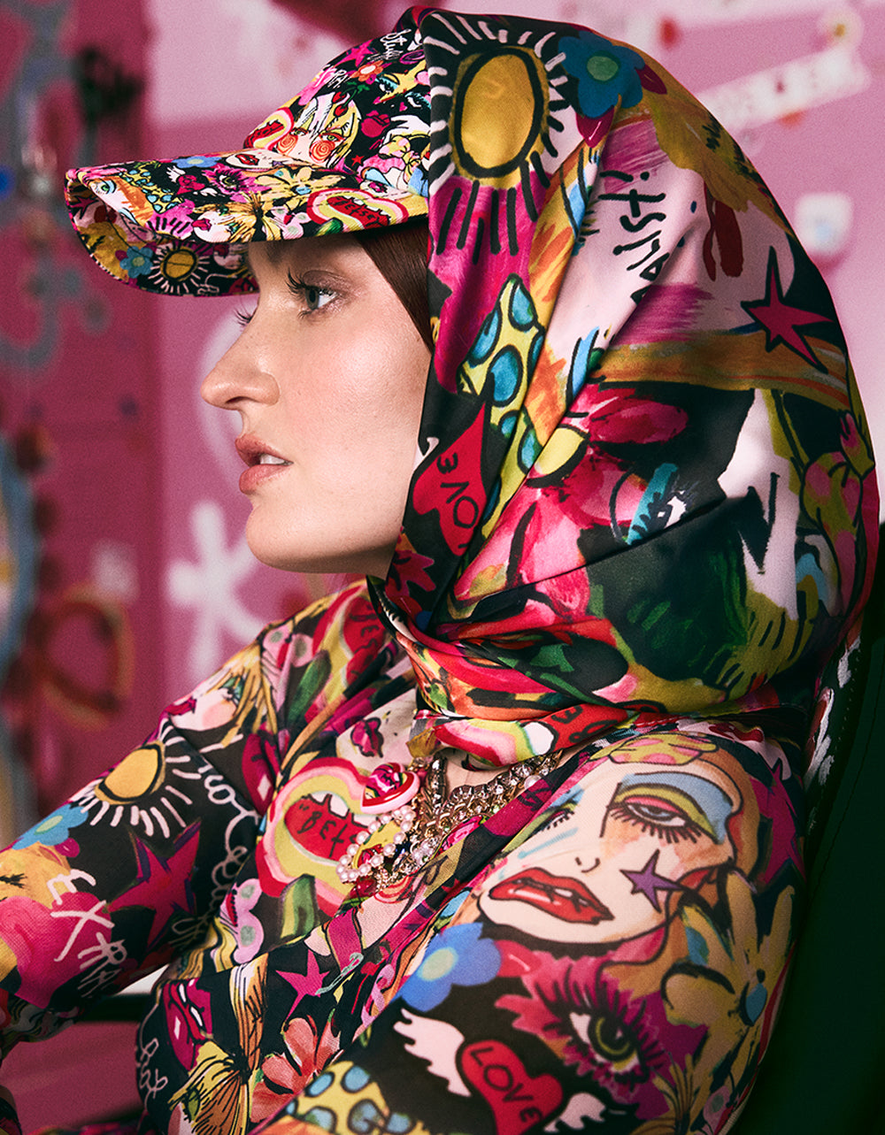 Elevate your style with our luxurious BETSEY’S ART SATINE SQUARE SCARF 35×35 BLACK MULTI. The chic printed design showcases Betsey’s own hand-drawn faces print. bringing artistic flair to any look. Versatile and chic. wear it around your neck for a polished finish or style it as a hair accessory for instant personality. A must-have piece for collectors of Betsey’s art campaign collection.