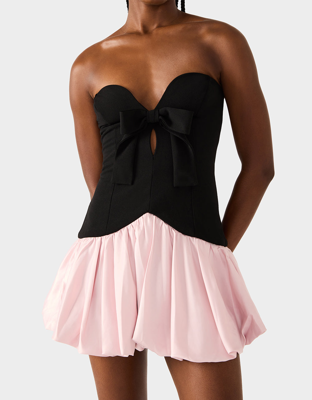 Meet your new favorite dress: the BETSEY’S BOW DRESS BLACK MULTI. This strapless mini in black and pink features a show-stopping oversized bow and a breezy. flowy fit. Whether you’re dressing it up or keeping it casual. it’s the perfect playful piece to make every moment shine.