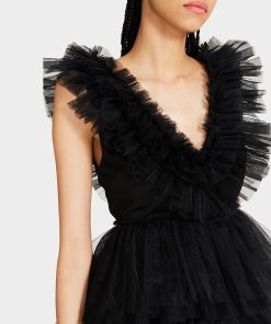 Show off your playful side in this sassy-sweet tulle mini ! Perfect for a night out or to make a flirty statement at a special event. Featuring a sleeveless design and tiered ruffles down the skirt. you’ll be sure to turn heads.
