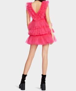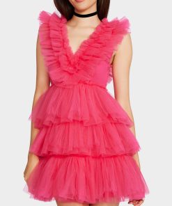 Show off your playful side in this sassy-sweet tulle mini ! Perfect for a night out or to make a flirty statement at a special event. Featuring a sleeveless design and tiered ruffles down the skirt. you’ll be sure to turn heads.