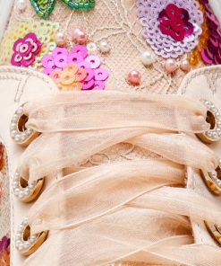 Meet the BONNY NUDE FLORAL —where glam meets everyday wear. Adorned with shimmering sequins and intricate embellished flowers. this low-top lace-up sneaker is anything but ordinary. The delicate tulle laces add a dreamy. whimsical touch. while the platform sole keeps you comfortable and grounded. Whether you’re heading to brunch or dancing through your day. this sneaker proves that fun and functionality go hand-in-hand.