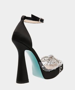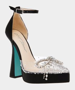 Step out in style with CHER satin ! Looking for a shoe that’s sure to spice up your evening? This platform heel features a rhinestone bow on its transparent pointed toe that is perfect for adding a touch of sparkle to your wardrobe.