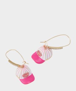 BASEBALL HAT SHEPHERD HOOK EARRINGS PINK